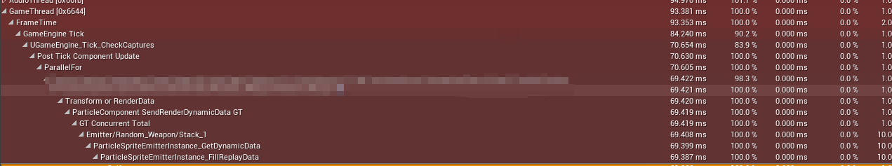 다음은, Profiler 도구를 사용해 발견한 개발버전의 프로젝트 A의 프레임 부하 사례를 소개하고자 한다.