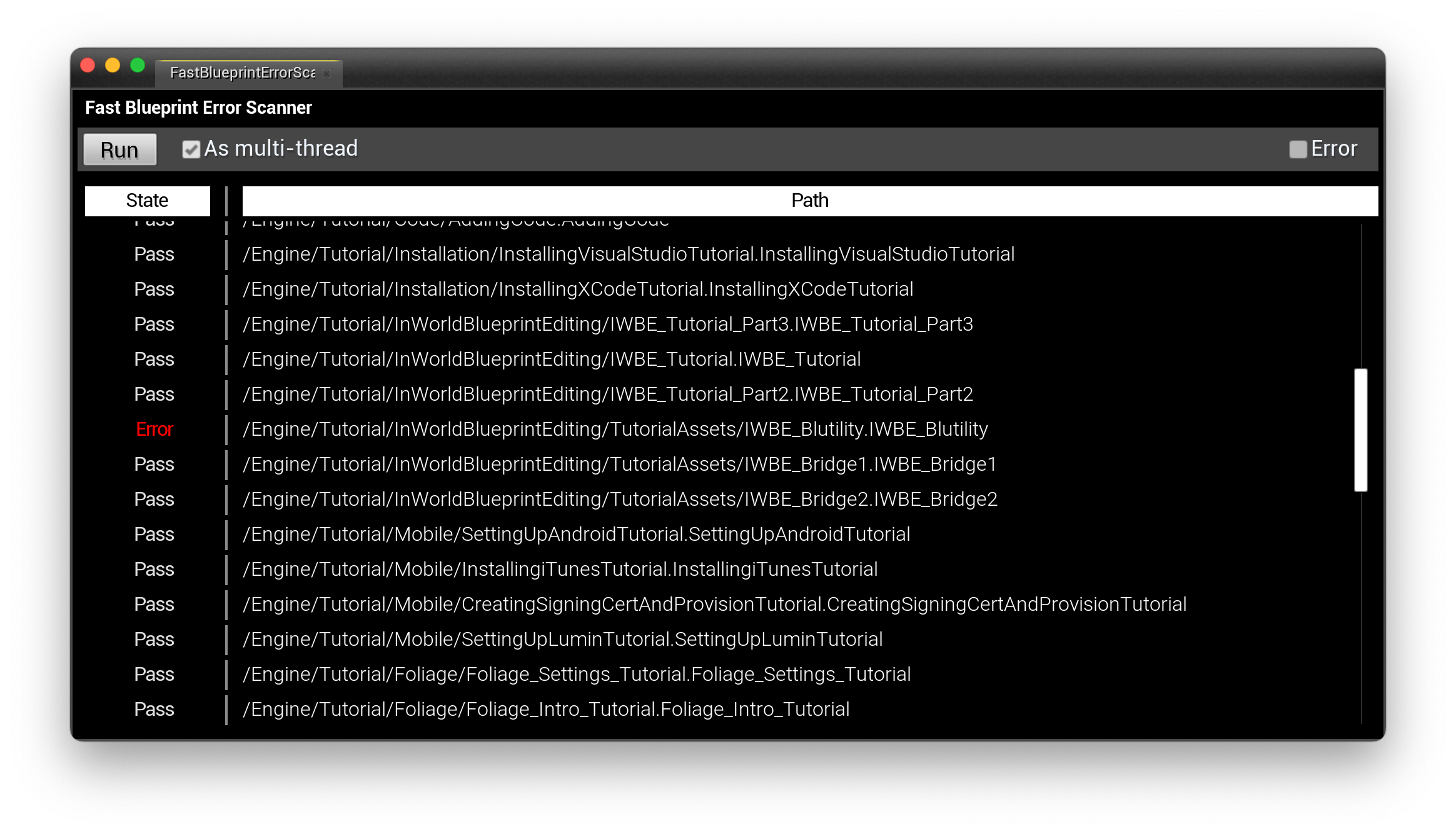 허나 현재 진행중인 프로젝트에는 5000개가 넘는 블루프린트 에셋과 레벨들이 있었고 이 전체를 검사하니 1시간이 넘어갔다. 즉, 실무에 사용할 수가 없는 플러그인이었다.
