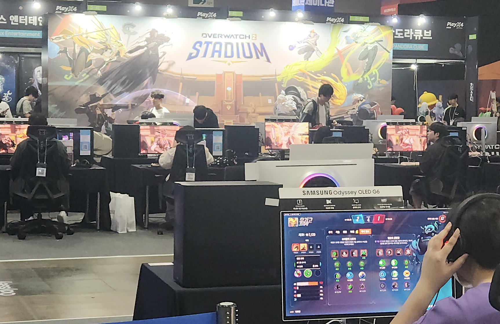 요즘 오버워치의 감다살 이벤트로 평가받는 스타디움 콘텐츠 부스입니다. 저도 요즘 다시 복귀해서 조금씩 하고 있는데, 특성과 벤 시스템이 꽤 재밌습니다.