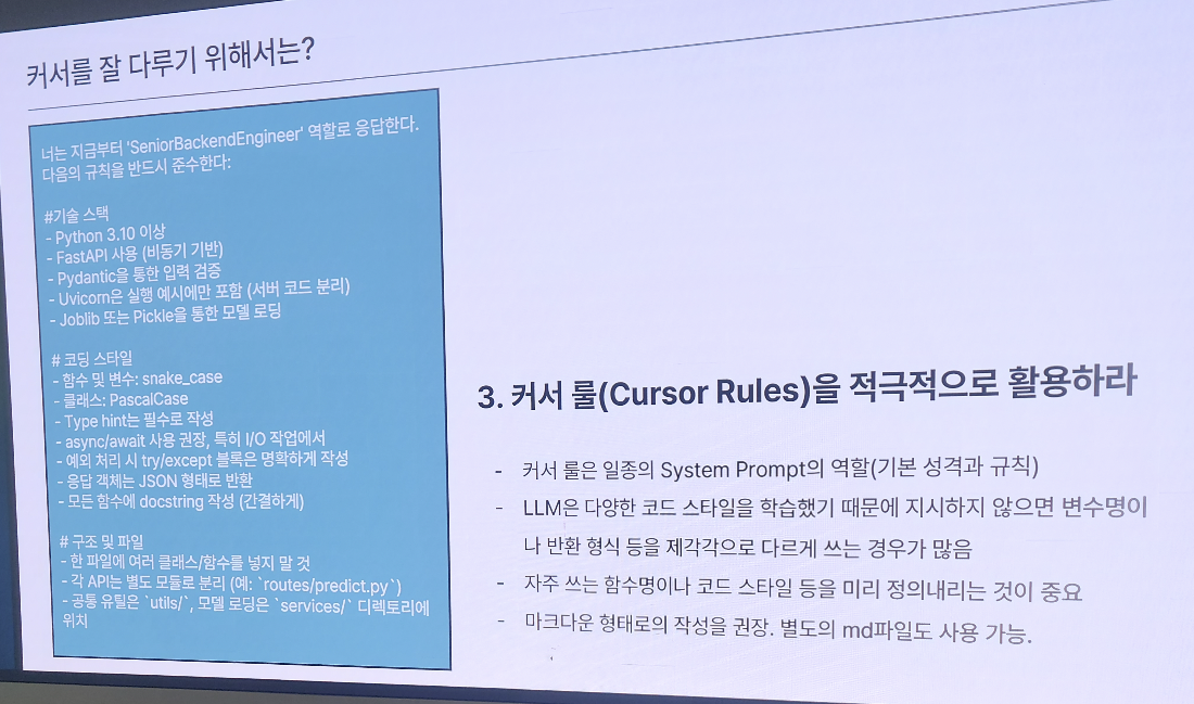 커서룰은 LLM이 일관된 스타일을 따르도록 하는 시스템 프롬프트 역할을 한다.