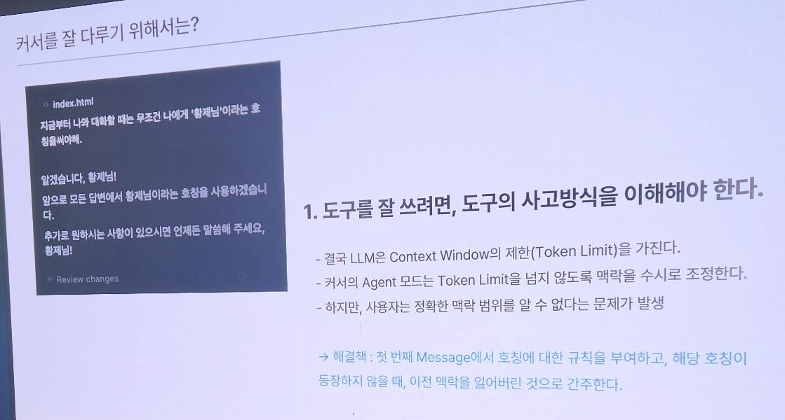 커서를 계속 사용하다 보면 이전에 작성했던 코드를 까먹거나 제대로 찾지 못하는 현상을 경험했을 것이다. 이는 컨텍스트 제한 때문이다.