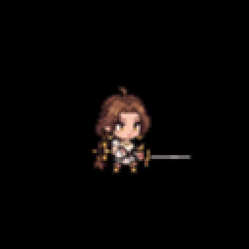 | Keye | The video features a pixel art animation of a character that appears to be a chibi-style (small, cute) depiction of a warrior or hero. The character has short, light-colored hair and is wearing a dark outfit with red accents, possibly armor or clothing. The character is holding a weapon, which looks like a sword or a similar blade, and is in a dynamic pose that suggests movement or action. The animation is looped, showing the character in various frames that depict motion. The character’s expression and posture change slightly between frames, indicating a sense of action or combat. The pixel art style is reminiscent of retro video games, with a limited color palette and a focus on simple, clear lines and shapes. The background is plain black, which helps to highlight the character and its movements. The overall impression is that of a small, energetic character engaged in some form of action or battle, presented in a charming and stylized manner typical of chibi art. | 전사나 영웅의 치비 스타일(작고 귀여운) 묘사로 보이는 캐릭터의 픽셀 아트 애니메이션을 보여준다. 캐릭터는 짧은 밝은 색 머리를 가지고 있고 빨간 악센트가 있는 어두운 복장, 아마도 갑옷이나 의복을 입고 있다. 캐릭터는 검이나 비슷한 날과 같은 무기를 들고 있으며, 움직임이나 행동을 시사하는 역동적인 자세를 취하고 있다. 애니메이션은 반복되어 움직임을 묘사하는 다양한 프레임에서 캐릭터를 보여준다. 캐릭터의 표정과 자세가 프레임 사이에서 약간 변하여 행동이나 전투의 감각을 나타낸다. 픽셀 아트 스타일은 제한된 색상 팔레트와 단순하고 명확한 선과 형태에 중점을 둔 레트로 비디오 게임을 연상시킨다. 배경은 평범한 검은색으로, 캐릭터와 그 움직임을 강조하는 데 도움이 된다. 전체적인 인상은 치비 아트의 전형적인 매력적이고 양식화된 방식으로 제시된, 어떤 형태의 행동이나 전투에 참여하는 작고 활기찬 캐릭터이다. |