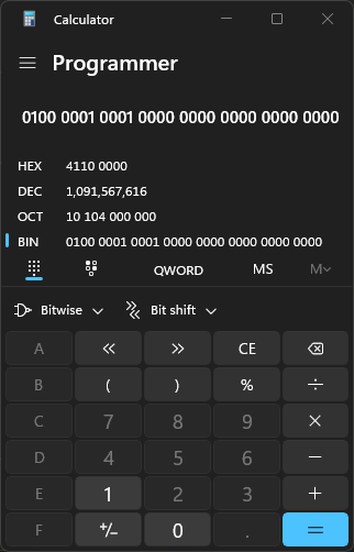 01000001 00010000 00000000 00000000